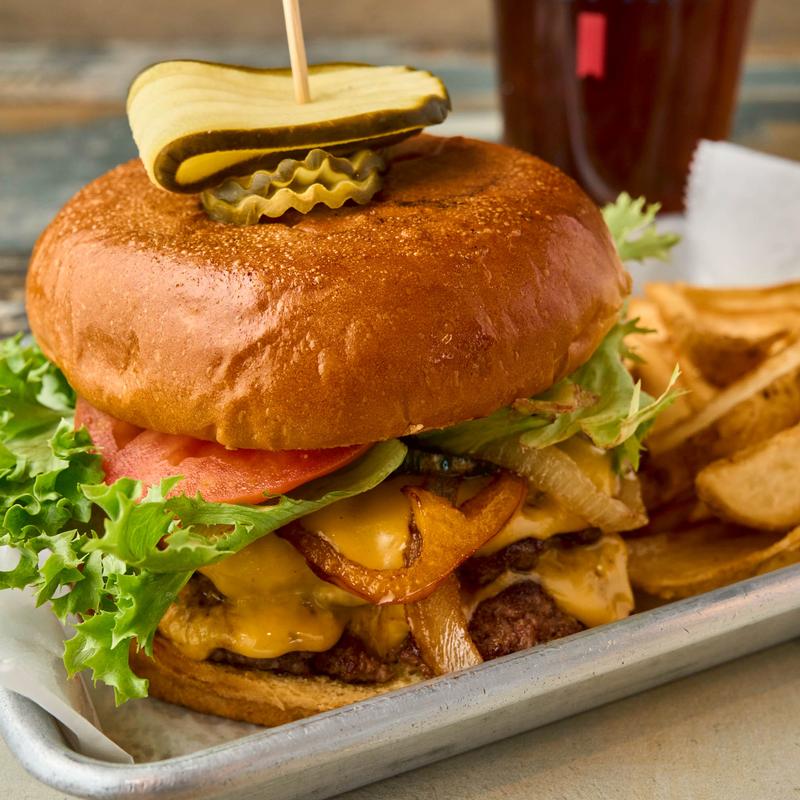 Double meat, cheddar, mushrooms, fried onions, and bourbon sauce.
